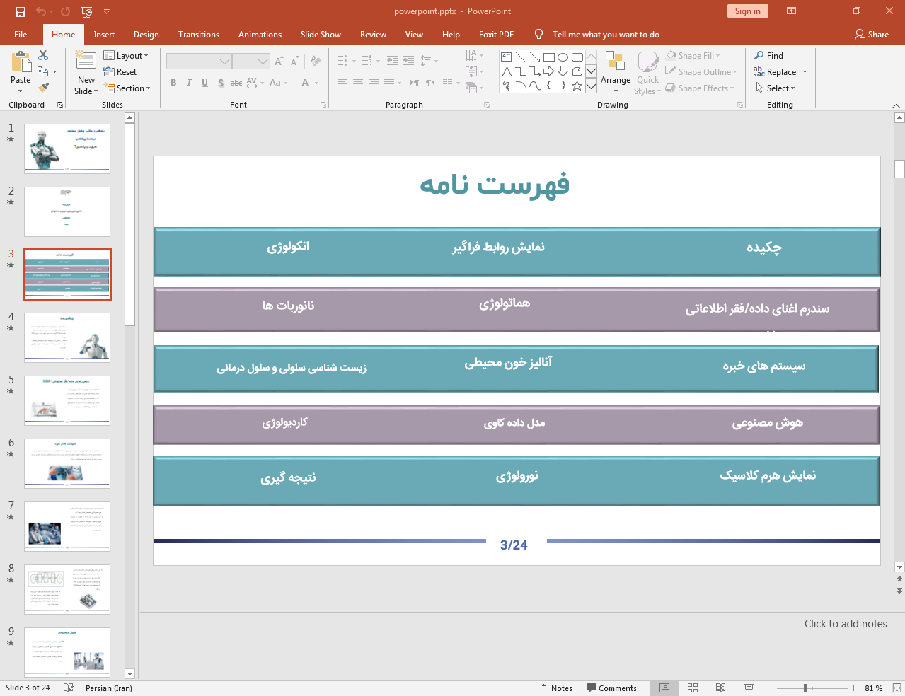 این پاورپوینت در 24 اسلاید تهیه شده و در ادامه نیز تصویر مربوط به اسلاید شماره 3 آن قرار داده شده است: