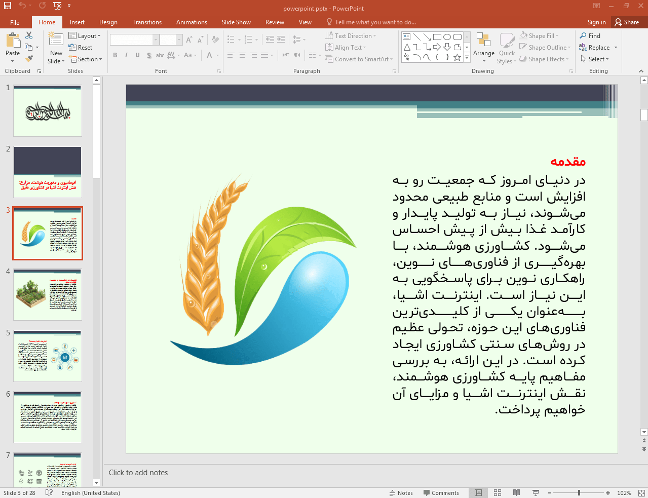 این پاورپوینت در 28 اسلاید تهیه شده و در ادامه نیز تصویر مربوط به اسلاید شماره 3 آن قرار داده شده است: